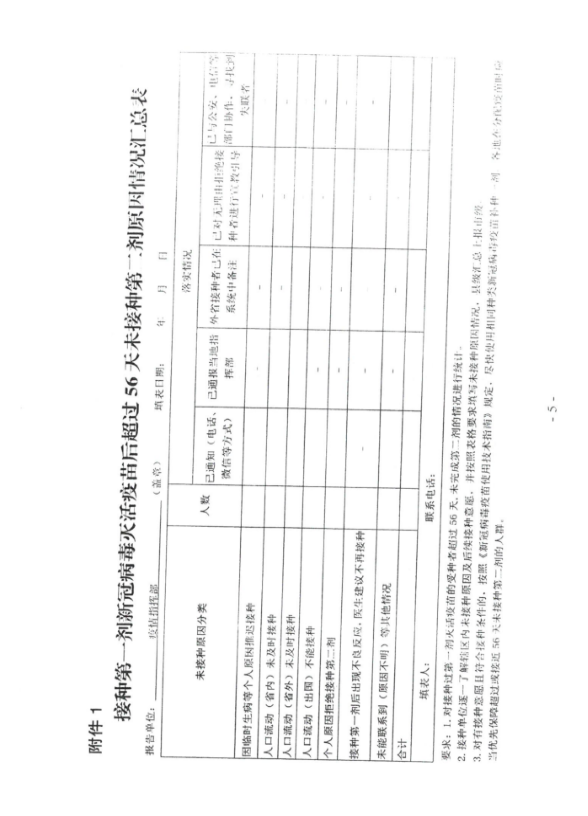 五、对已在本地接种第一剂疫苗去往外地人员,要及时通知其到所在地完成第二剂疫苗接种,并及时反馈已接种信息,注明第二针接种时间和地点。