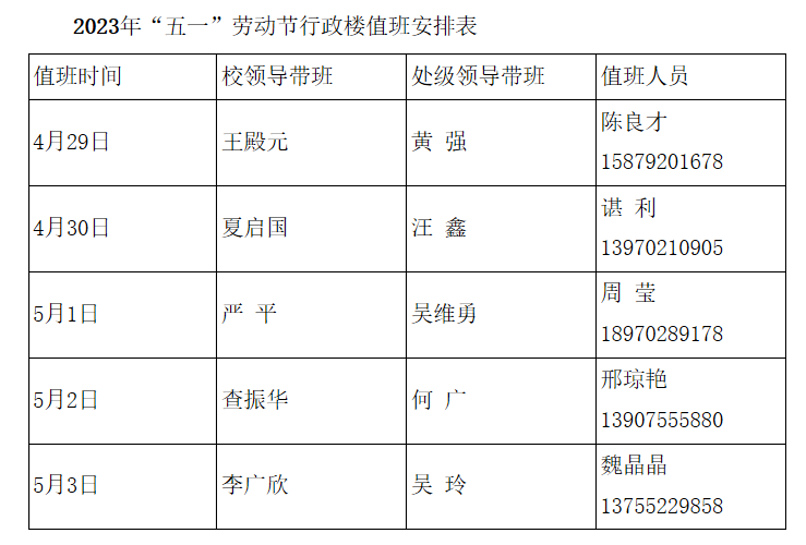 3.请有关部门和人员按要求做好放假期间行政楼值班工作(值班安排表附后)。