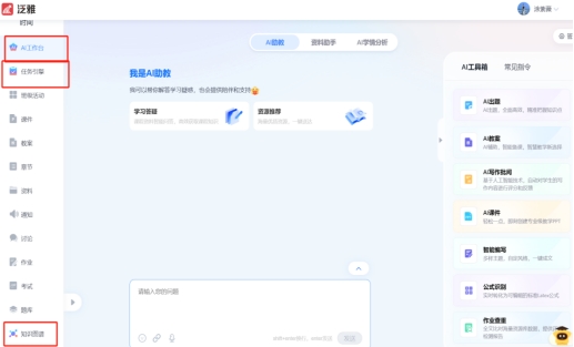 1. AI助教与知识图谱(网页端):校园网主页-公共服务-网络教学平台-登录-进入学习空间-我教的课-AI工作台及知识图谱: