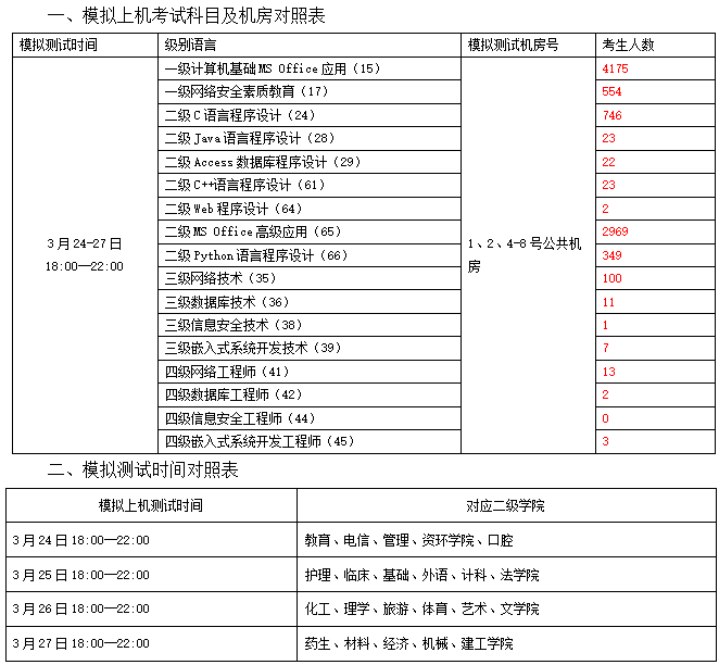 请考生按照对照表的时间准时参加模拟上机测试,逾期不再安排模拟测试环节。