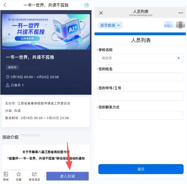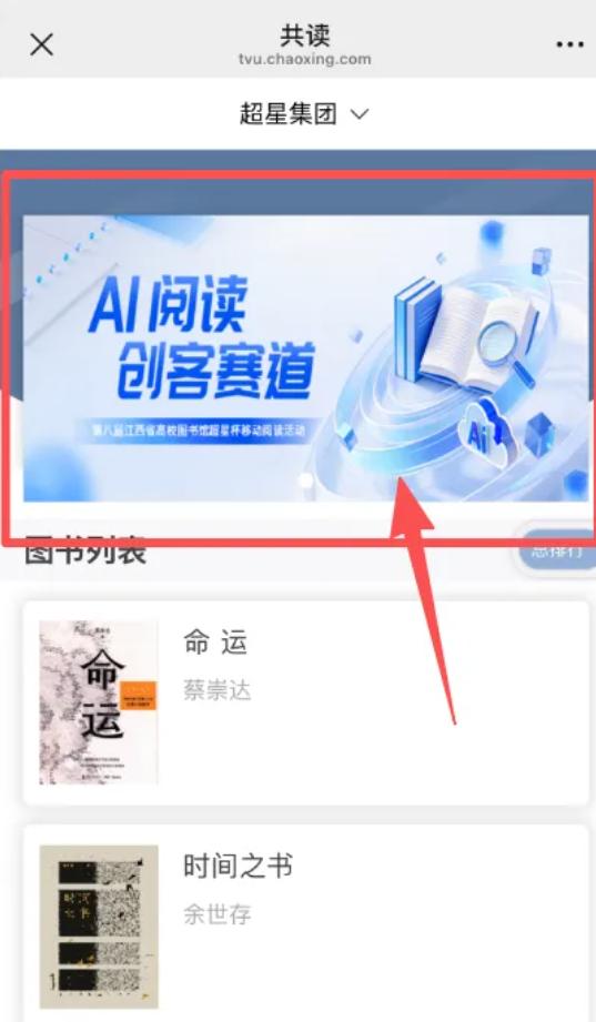 点击图书共读页面上方轮播图即可参与。