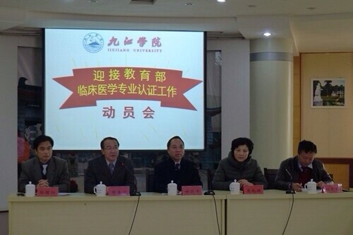 1月8日上午,学校在主校区一号会议组织召开了临床专业论证工作动员会,校长甘筱青、副校长吴桃娥、陶春元、杨焱林、杨耀防,教务处等各相关处室负责人,公共课及相关课程授课单位负责人,医学部及医学各学院院长、书记、教学副院长、教务科长、学生科长、团委书记及基础医学院、临床医学院全部教研室主任,BB贝博艾弗森官方网站附属171医院、BB贝博艾弗森官方网站附属景德镇医院、九江市一医院、三医院、九江市妇幼保健院科教办负责人,临床医学专业认证工作领导小组成员,临床医学专业学生代表等80余人参加动员会,会议由陶春元副校长主持。