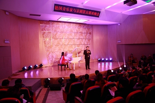 1月7日晚,“德国音乐家与京剧票友联欢晚会”在贝博官网八里湖区学术报告厅举行。这是贝博官网柔性引进的德国音乐家艺术团队的第二场演出。来自德国音乐家团队的成员悉数登场,与九江京剧票友同台献艺,为贝博官网师生带来了一场震撼的视听觉艺术盛宴。学校有关部门、二级学院师生代表400余人欣赏了本场音乐晚会。