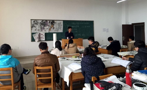 3月19日上午,校纪委书记魏立平来到厚德楼811教室,同艺术学院A1391(绘画)班同学一起听余晓庭副教授讲授的“中国画研究”课程。艺术学院党委书记王春生、副院长虞斌一同听课。