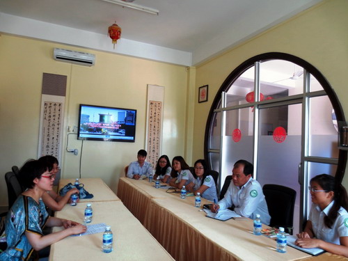 3月18日上午,中华人民共和国驻柬埔寨大使馆盛蔚蔚处长,新任的韩静老师莅临柬埔寨王家研究院孔子学院指导工作并看望汉语教师及志愿者们。中方院长帅式毅和汉语教师志愿者们热情接待并进行了座谈。