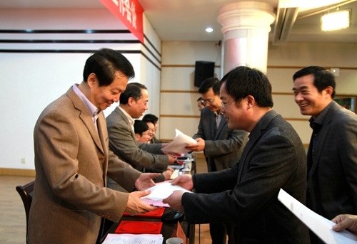 随后,会议还举行了党风政风特邀监察员聘任仪式。为充分发挥广大师生民主监督的作用,经各二级单位推荐、学校纪委审核和学校批准,决定聘请赵毅、张锋等十二位同志为学校党风政风特邀监察员。校领导为特邀监察员们一一颁发了聘书。