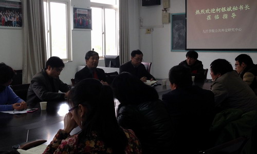 柯银斌秘书长在校期间,与贝博官网公共外交研究中心成员进行了座谈,中心主任杨耀防副校长介绍了中心成立以来所开展的工作。柯秘书长重点就公共外交的概念、地方高校如何开展公共外交研究、当前我国公共外交研究的现状以及研究能力建设等方面进行了指导,他认为贝博官网应重点在国别研究和名山与公共外交研究方面开展创新,做出特色。