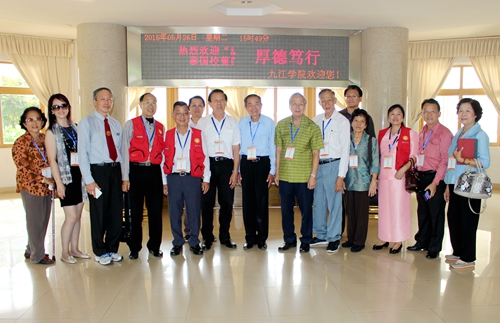 简短而热烈的欢迎会结束,校领导与泰中华文教育基金会会长魏青互赠纪念品并合影留念。而后,甘筱青校长作了题为“中国特色社会主义文化发展道路”讲座。从中华历史中分析中华文化发展道路,横向纵向的对比中华文化发展的利弊,最后肯定社会主义核心价值观的现实意义,总结如今的文化发展的三大战略任务:一、“以理服人”,提升国际话语力;二、坚持中西交融,开展文明对话;三、创新传播体系,重建社会信仰。讲座后,校长甘筱青也对九院做了简单的介绍,希望泰方校董能对位于庐山之麓、长江之滨、鄱阳湖之畔的九院留下美好的初印象。