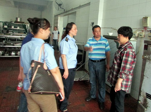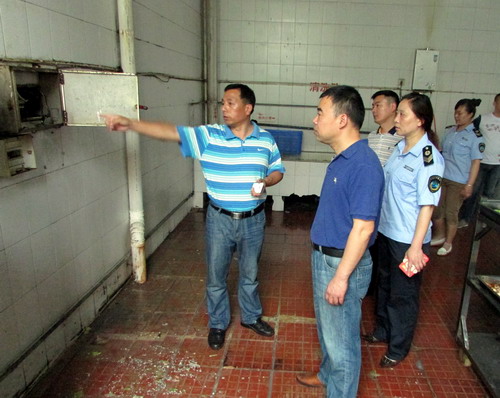 检查中,工作人员提出了学生食堂消防设施的规范和更新的要求;对经营商户用电用气状况进行了仔细检查,对检查中发现的部分设备设施电气使用安全隐患提出了整改要求球,并严格规定了整改规范时限。