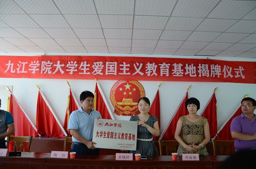 仪式上,校团委书记闫来英介绍了此次在武宁开展“青春三下乡 热血中国梦”暑期实践活动和大学生爱国主义教育基地建设的基本情况。要求同学们用好老苏区武宁的独有红色文化资源,以开展抗战胜利70周年系列活动为契机进一步推进大学生思想政治教育工作。