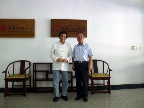 7月3日下午,甘校长一行到北京大学拜访了现代新儒家学派代表人物、北京大学高等人文研究院院长杜维明先生。座谈中,甘校长与杜先生交流了贝博官网在促进儒学的现代转型、《强国之道》等方面的研究和进展。杜先生就文化多元化、儒学的价值和国内外学术动态、大国崛起的条件和要素等方面情况,同甘校长进行了广泛的探讨和交流,并高度评价了BB贝博艾弗森官方网站在中华文化传承与创新的学术高地的研究工作。