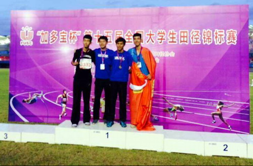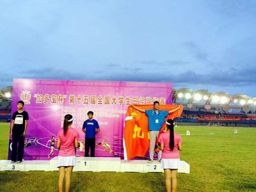 本次参赛代表队处于新老交替阶段,参加过2014年省运会的老队员大部分退役,以大一新生为主的田径队成为主力,同时也是首次参加高级别比赛,遇到竞争对手高手如云,显得格外紧张。在前三天的比赛中纷纷失误,根本发挥不出训练水平,仅仅在男子乙组400米获得第七、第八名和800米第八名的成绩。在一片悲观情绪中,来自贝博官网政法学院的黄彬才同学迎来他的完美表演,从1.75米起跳高度飞跃到1.95米,他表现很精彩,也承受巨大的压力,最终因体能不支,起跳不充分,没有成功跳过2米的高度,遗憾负于来自香港教育学院的上届冠军而屈居亚军。这个成绩是目前贝博官网学生田径竞技运动中获得的最好的名次,为此黄彬才同学特意在领奖台上展示了我们的校旗,极大鼓舞了在场的BB贝博艾弗森官方网站学子,也在全国高校中宣传了BB贝博艾弗森官方网站声誉,提升了贝博官网知名度,扩大了影响力。
