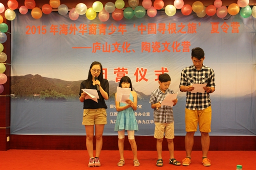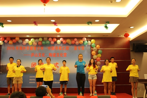 7月30日下午,由国务院侨办主办、江西省侨办承办和BB贝博艾弗森官方网站协办的“2015年海外华裔青少年‘中国寻根之旅’夏令营庐山文化、陶瓷文化营”在九江举行闭营仪式。江西省侨办吴建民巡视员、BB贝博艾弗森官方网站甘筱青校长,相关部门负责人以及教师、学生青年志愿者,来自瑞典、德国的40余名海外华裔青少年参加闭营仪式活动。闭营仪式由BB贝博艾弗森官方网站国际交流合作处副处长王贤淼主持。