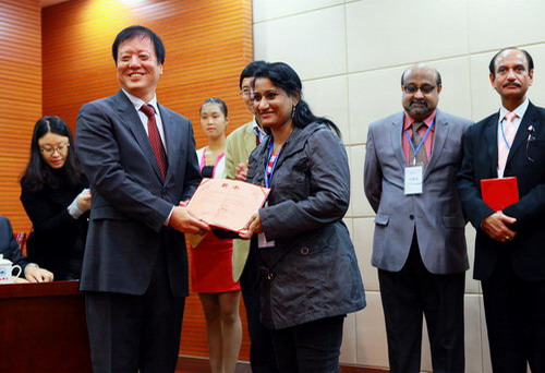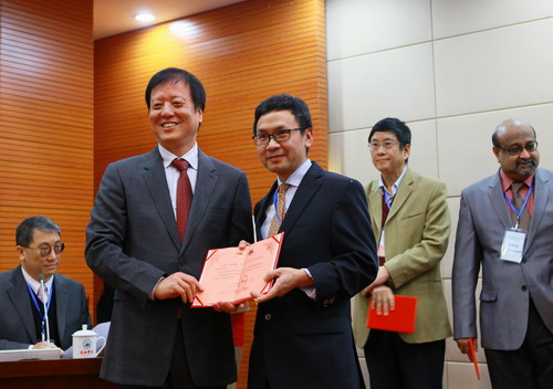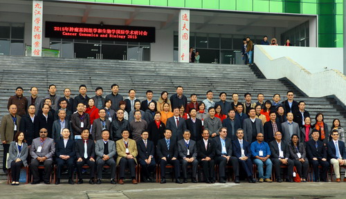 11月13日上午,2015年肿瘤基因组学和生物学国际学术研讨会开幕式在贝博官网逸夫图书馆报告厅举行。校党委书记郑翔、副校长杨焱林、杨耀防出席,来自大陆、香港、澳门、葡萄牙、美国、新加坡、印度、日本、英国等国家和地区高校研究机构的专家学者,以及省市媒体记者、贝博官网师生代表200余人参加开幕式。