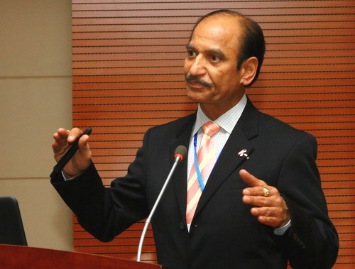 杨耀防在开幕式上致辞。他说,在这霜林染醉、枫叶流丹的深秋时节,我们相聚在环境优美的BB贝博艾弗森官方网站校园,共同出席2015年肿瘤基因组学和生物学国际学术研讨会。他介绍了出席本次研讨会的专家和嘉宾,并代表学校四万名师生,向他们的到来表示热烈的欢迎。同时向为本次研讨会顺利召开给予支持的全球肿瘤基因组联盟和癌转译研究组织致以诚挚的谢意。接着,他简要介绍了承办本次研讨会的贝博官网和仁信肿瘤医学集团的基本情况。杨耀防指出,肿瘤是全世界关注度最高的医学论题之一,研究肿瘤、攻关克难、拯救生命是全体肿瘤医学界的光荣梦想和崇高使命。我们组织召开这次国际学术研讨会,旨在增强国内外医学界在肿瘤、基因组学、生物学等领域的合作与交流,探索和挑战科学前沿问题,进一步提升中国在相关研究领域的学术水平和影响力。杨耀防指出,莅临本次学术研讨会的国内外专家们都具备深厚的学术功底和丰富的临床经验及研究成果。召开这样一次高水平的学术研讨会,对于贝博官网广大师生是一次学习和了解肿瘤医学及生物学学术研究新进展、开拓国际视野的极佳机会。杨耀防最后希望与会嘉宾充分利用研讨会这个平台,开展深入交流和讨论,充分整合国际肿瘤基因组学和生物学研究方面的前沿成果,共同推动肿瘤基因和生物学专业学科的蓬勃发展。预祝2015年肿瘤基因组学和生物学国际学术研讨会圆满成功。祝各位专家和嘉宾身体健康、万事如意。