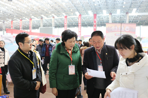贾桂业副主任来到招聘展位台前,与用人单位深入进行沟通和交流
