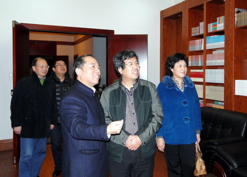 周建波在校期间,在校长甘筱青和副校长吴桃娥的培同下参观了两南山陈寅恪研究院和陶渊明研究院,对学校在育人和文化传承创新等方面的工作赞不绝口。