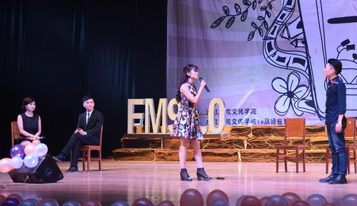 接下来现场的气氛被舞蹈《Up and down》点燃,充分展现了文传学子的热情与活力;《创意绕口令》节目在情景短剧中巧妙地插入各种绕口令,让观众在开怀大笑的同时看到了他们扎实的语言功底;而《青春回忆录》在舞台现场做起了访谈节目《文传友约》,表演幽默诙谐,用别样的方式对观众再现了他们热情洋溢的青春;舞蹈《咏春》和配音秀等节目更是让晚会现场走向又一个高潮。