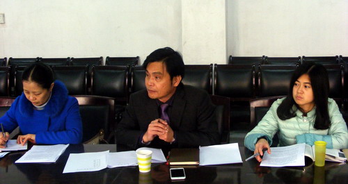 12月30日下午,副校长杨耀防在组织人事部正处级组织员魏松、干部人才科科长陈玲芳的陪同下,参加了文传学院2015年度处级干部述职测评大会。文传学院党政领导班子和全体教职工参加了会议。会议由魏松主持。