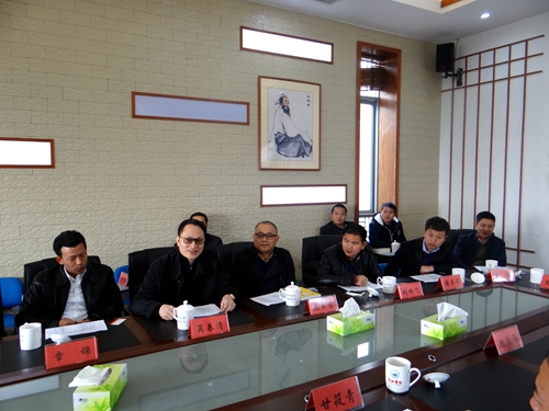 在两南山庐山文化研究中心会议室。校长甘筱青、副校长吴桃娥、纪委书记魏立平与校友代表们亲切座谈。座谈会由副校长吴桃娥主持。