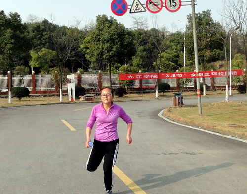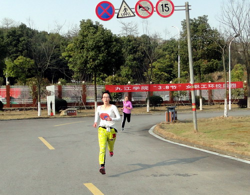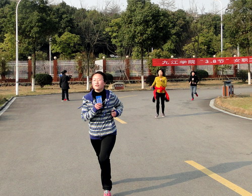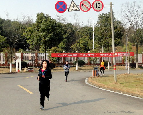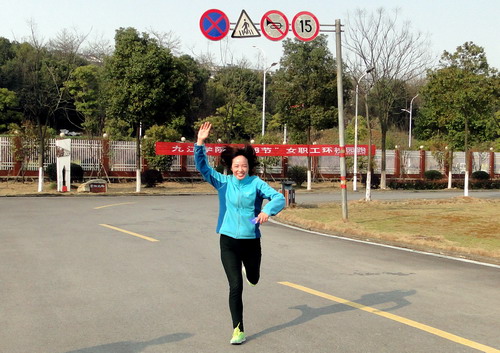 下午16时,第八届庆祝“三八”妇女节校园环跑活动开始。校工会副主席支少华作了简短讲话,他向大家表示节日的问候,并宣读了环跑规则,希望大家相互帮助,注意安全,祝愿大家在本次环校跑活动中取得优异成绩。随着支少华的一声令下,只见女教工们犹如离弦之箭飞奔出去,她们反应敏捷,起跑干净利落。大家从体育训练馆出发,途经红楼、厚德楼、逸夫图书馆、拓展训练基地、两南山、室内田径馆、紫阳北路,最后到达校园西大门,总赛程约3000余米。