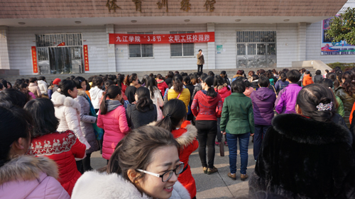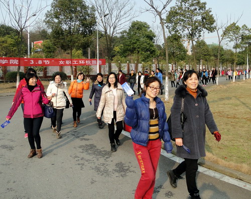 3月10日下午,雨过天晴,春风和煦,阳光灿烂,校园里开满了各色鲜艳夺目花朵。校体育训练馆前人声鼎沸,来自机关、各二级学院的老中青700余名女教职工早早地在赛场等候,她们个个精神饱抖擞,跃跃欲试。她们兴致勃勃地参加了庆祝“三八”环校跑活动。