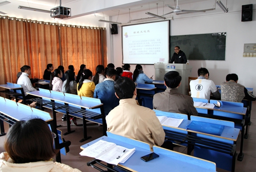他首先对周老师的授课方式与教学效果给予肯定。他说,从有同学来“蹭课”,这一点说明周老师的课是能吸引人,受同学们欢迎的。随后,他对周老师的授课特点概括为两点:一是能够对课本知识进行提炼;二是能够对知识点进行扩展。他指出,知识点的扩充是需要平时积累。周老师在授课时能够即兴联想。联想是很重要的,在当下“大众创业,万众创新”中也是需要的。联想的前提是积累,从积累到联想,再从联想到创造。