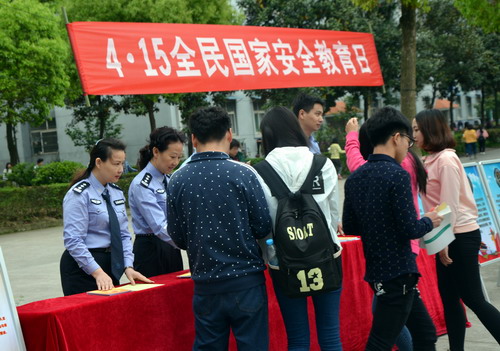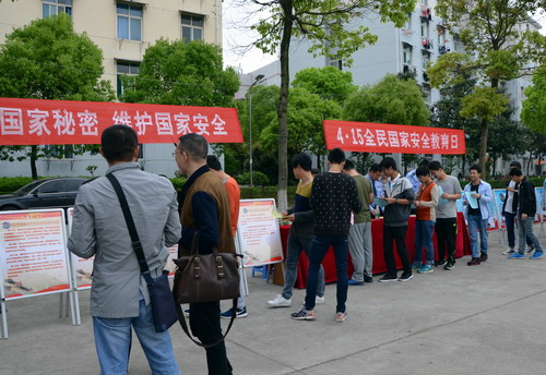 为提高贝博官网师生的国家安全意识,使贝博官网师生谨记维护国家安全的重要意义,在首个全民国家安全教育日到来之际,4月15日上午,学校保卫处、学生处协同九江市国家安全局在贝博官网三食堂广场举办了以“保护国家秘密,维护国家安全”为主题的“国家安全教育日”宣传活动。