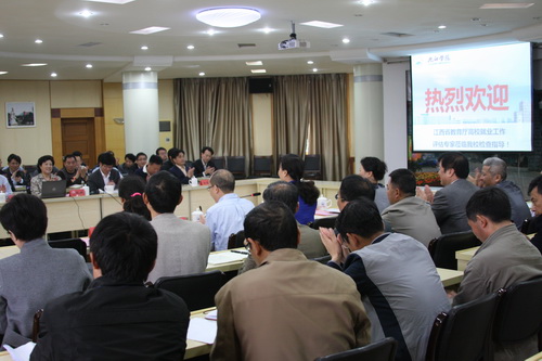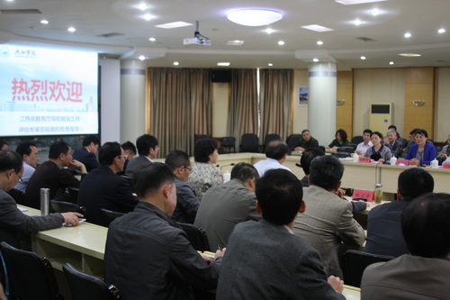 张雪黎组长详细说明了本次评估的目的、内容、流程和指标体系。她强调,大学生就业工作是办人民满意教育、服务千家万户的重要体现,是检验高校办学成果的最好手段,反映了高校在人才培养上的特色,是关系到千家万户的民生工程。江西省教育厅组织本次检查评估就是希望通过评估检查对高校中在大学生就业工作方面好的做法和经验总结出来,同时,希望能够以评促改、以评促建、以评促发展,能把全省高等教育提升到一个更高的水平。评估组将在不打扰学校正常教学秩序的前提下,采取听汇报、看材料、实地察看、组织座谈会或者个别交流以听取师生对学校评价等方式重点检查就业工作在机构、人员、经费和场地等“四个到位”的落实情况。