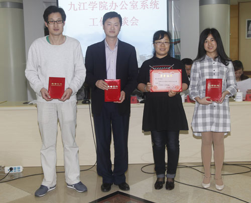 党院办副主任袁传发宣读了2015年度全校办公室工作先进单位和先进个人表彰决定,魏书记和党院办领导为获奖单位和个人颁奖。