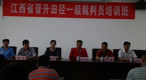 6月11日上午8:30,在八里湖校区综合楼621室召开了江西省晋升国家田径一级裁判员培训班开班仪式,仪式由江西省体育局田游中心付锋副主任主持,出席仪式的领导有国家体育总局训练局杨培刚副局长、江西省体育局青少处周凌云处长、江西省田游管理中心竞训科金丽琴科长、BB贝博艾弗森官方网站体育学院王勤院长、党委书记张浦强和九江中体公司万建国总经理;参加仪式的还有田径教研室所有教师、其他教研室部分教师和110多名学生学员。