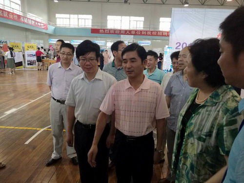 就业洽谈会期间,副校长吴桃娥、纪岗昌、王万山、校纪委书记魏立平在招生与就业处处长肖国丰、副处长罗双凤等的陪同下,逐一到各企业、单位的招聘点与各企业、单位的负责人进行交流和慰问。