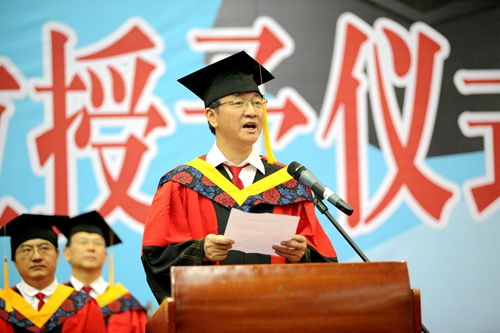 吴副校长代表学校对2016届毕业生提出希望和祝愿:要始终心怀理想。志存高远,在时代发展中和社会实践中不断完善自己,为实现国家富强、民族振兴、人民幸福的伟大“中国梦”而奋发图强。要不断追求真理。要立德立品,保持充足信心,爱岗敬业,诚信为人,勤勉工作,服务社会,在各个岗位上做出不平凡的业绩。要勇于创新创业。要进一步发挥创新思维和创业精神,让创新融入血脉,让创业成就未来!要传承优秀文化。思索和恪守做人做事做学问,在广阔天地里建功立业。