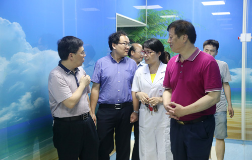 随后,专家一行在院领导的陪同下,参观了西院门诊、住院部、乳腺科病区、休闲庭院,东院门诊、病区、特色连廊、休闲吧等处,重点对西院肿瘤科、放疗室的相关工作进行了现场督查指导。双教授对临床医学院/附属医院放疗区域的合理布局、放疗设备的科学安装给予了高度肯定。通过对整个院区进行参观了解后,他认为,临床医学院/附属医院作为综合性教学医院,科室配备齐全,医学装备先进,专业力量雄厚,医院发展思路科学、明晰,院内环境又极富特色,这都对医院肿瘤专科的建设发展提供了强有力的保障,希望并相信在医院领导的高度重视下,不久的将来,附属医院肿瘤专科建设及其他各项工作一定会取得更加显著的进步!