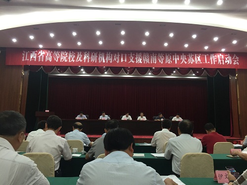 8月3日,江西省高等院校及科研机构对口支援赣南等原中央苏区工作启动会在赣州召开。纪岗昌副校长带队出席,党办主任刘遵海、大学科技园李强等一同参加会议。