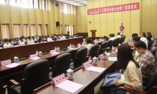在首发仪式上,BB贝博艾弗森官方网站庐山文化研究中心常务副主任李宁宁教授介绍了《江西历代进士全传》编纂缘由及经过。自2012年3月,成立《江西历代进士全传》编纂工作委员会以来,BB贝博艾弗森官方网站集中全校的研究力量,启动《江西历代进士全传》的编纂工作。四年来,直接参与编撰的校内教师和研究人员多达52名,校外专家2人。参编专家深入国家图书馆、上海图书馆等国内大型图书馆,查找方志、家谱、碑刻等各种文献资料,复印了近30000页的进士传记材料。编纂过程中,专家们经常就某个进士归属某县或某个进士的双重籍贯问题进行讨论,或者为材料的多寡均衡问题而费尽心思,或者为寻找某篇文献的最早出处而上下求索。2015年完成初稿后,又用了一年时间进行加工打磨。