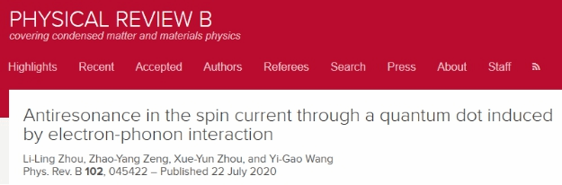近日,贝博官网理学院青年教师周利玲博士在纳米结构电子输运研究方面取得进展,其研究成果“Antiresonance in the spin current through a quantum dot induced by electron-phonon interaction”在国际著名学术期刊《Physical ReviewB》上发表。周利玲博士已连续两次以第一作者和通讯作者,BB贝博艾弗森官方网站为第一署名单位在该期刊发表研究论文。