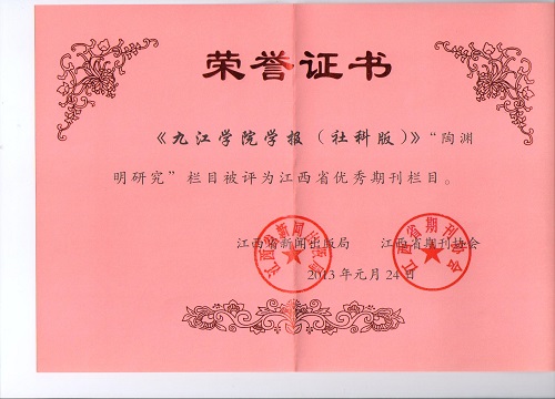 (4)担任《BB贝博艾弗森官方网站学报》“陶渊明研究”专栏的责任编辑,2007年被评为江西省高校学报优秀编辑工作者。2005年至2009年在学报编辑部工作,2017年至今担任学报编辑部主任,再度负责“陶渊明研究”专栏的责任编辑,编辑刊发了众多的陶研论文。