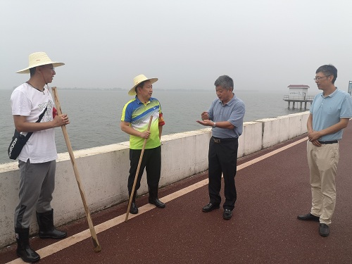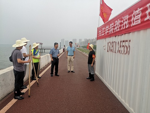 7月10日下午,副校长夏启国一行到贝博官网赛城湖城西港堤防汛值守堤段,检查指导防汛一线后勤保障工作,看望慰问当值教师职工。后勤管理处处长姜东升随同检查。