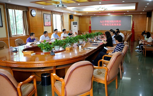 在交流座谈会上,湖南理工学院校长卢先明介绍了学校基本情况和办学特色。刘晓东校长介绍了BB贝博艾弗森官方网站基本情况和此次调研目的。刘晓东说,BB贝博艾弗森官方网站和湖南理工学院作为新建本科高校,具有许多相似性。一是地理位置相似:两所学校都位于长江之滨,大湖之畔,长江中游重要区域性城市节点上,校园环境美丽。二是历史背景相似:两所学校所在城市都有深厚的历史文化内涵,产业结构相近,BB贝博艾弗森官方网站办学历史可以追溯到1901年的但福德护士学校,湖南理工学院办学历史可以上溯到1910年的湖滨大学。三是发展历程相似:BB贝博艾弗森官方网站是2002年由九江财经高等专科学校、九江师范专科学院、九江医学专科学校和九江教育学院合并组建而成;湖南理工学院则是1999年由岳阳师范专科学校、岳阳大学、岳阳教育学院合并组建为岳阳师范学院,后于2003年更名而成。两所学校相似的发展历程使得两校具有共同的发展目标,湖南理工学院抢抓历史机遇,在硕士点建设、创新创业教育等方面走在了前面,对BB贝博艾弗森官方网站很有启发。希望借此次调研机会,推动两校互动交流,携手共进。