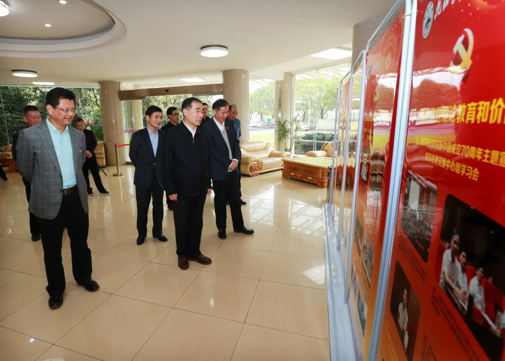 26日下午,检查组一行来到贝博官网行政楼,首先观看了陈列在行政楼大厅的“初心为党立德树人 使命担当为国育才”——BB贝博艾弗森官方网站2019年度思想政治工作图片展和BB贝博艾弗森官方网站教育资源整合建设项目沙盘模型。