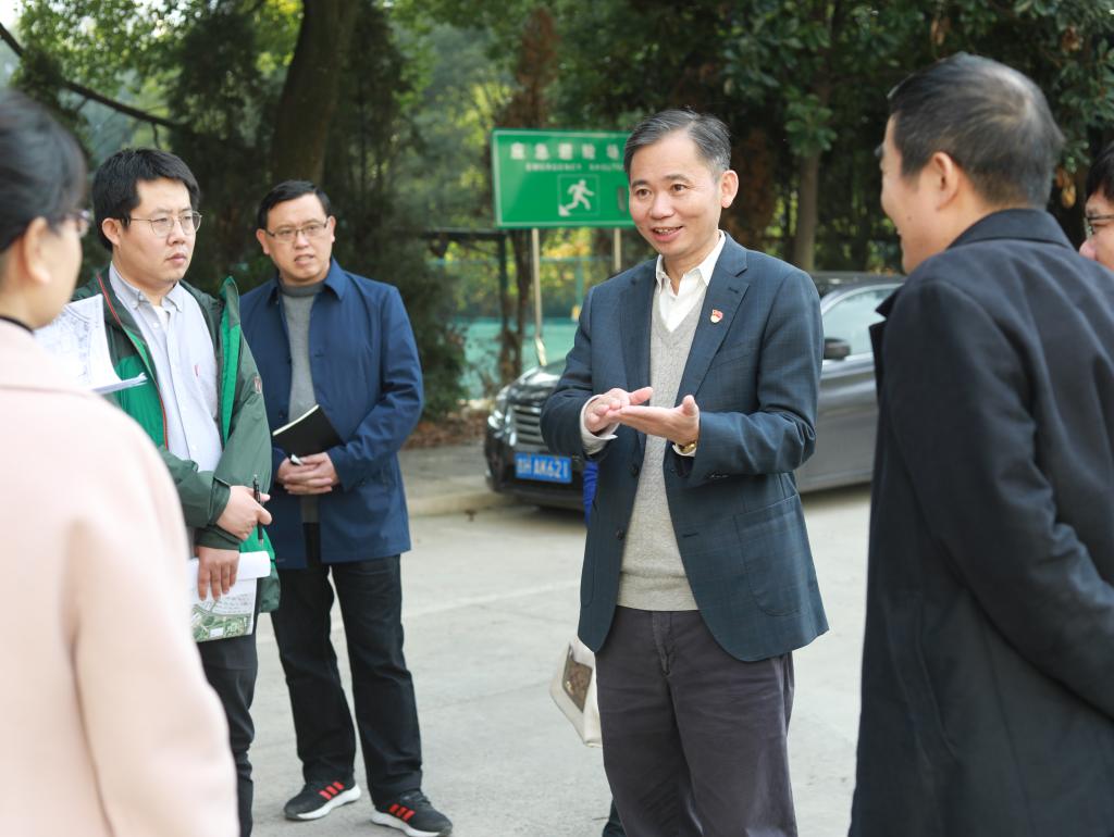 校领导实地考察了阳明山路到西大门段道路、西大门、五柳湖、外专楼、文理实验楼、化工学院实验楼、学生一栋宿舍等地,听取了相关部门负责人的介绍和设计单位的规划说明。结合学校目前的基本情况、“十四五”规划以及长期发展目标,他们对校园规划修编设计方案提出了建议方案及修编意见。