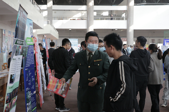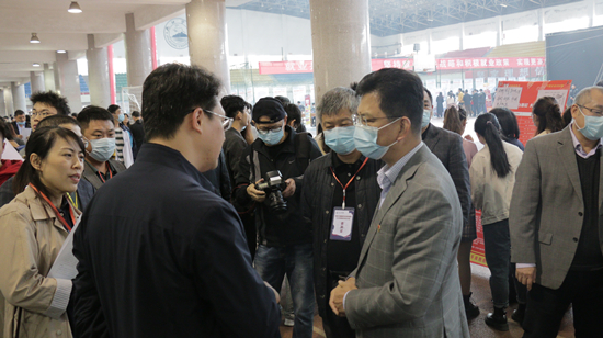 上午九点,招聘会正式开始,省高等院校毕业生就业工作办公室杨屾,学校党委书记赵伟、校长刘晓东、副校长夏启国、陈小林等领导在招生就业处负责人和部分二级学院负责人的陪同下陆续到现场视察指导,与用人单位招聘负责人和毕业生进行亲切交流,并就用人单位的人才需求、校企人才培养对接等方面交换了意见。九江职业大学、九江职业技术学院等兄弟院校就业部门负责人和德安县等地方领导也前来观摩交流。