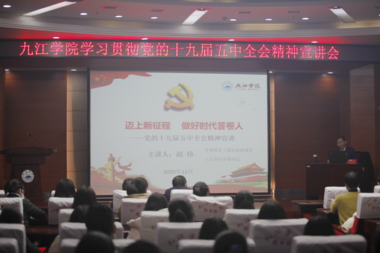 赵伟指出,党的十九届五中全会擘画了我国未来五年和中长期发展的宏伟蓝图,《建议》提出了到2035年建成教育强国的奋斗目标,明确了“十四五”时期建设高质量教育体系的战略任务,为实现教育现代化、建成教育强国开好局、起好步提供了基本遵循。省委第十四届十二次全会立足江西实际,明确了我省“十四五”发展总体要求、奋斗目标、主要任务和2035年远景目标,为我省推进社会主义现代化建设提供了方向指引。赵伟强调,深入学习贯彻习近平总书记重要讲话精神和党的十九届五中全会,是学校当前和今后一个时期的重要政治任务。学校全体党员干部和师生要系统学习,学以致用,努力做到学深悟透、知行合一,切实把思想和行动统一到全会精神上来。