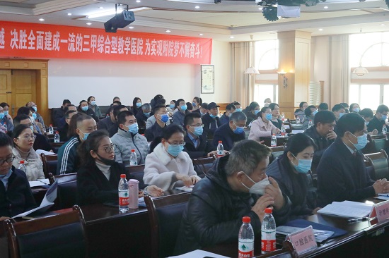 校长刘晓东教授、副校长杨耀防教授、北京大学医学教育研究所(全国医学教育发展中心)副研究员吴红斌博士、九江市第一人民医院罗云副院长等出席大会。贝博官网教务处、科研处、高教研究所、医学部、基础医学院、临床医学院、护理学院、药生学院、附属口腔医院、校医院和国际交流学院的相关领导与教师代表共计约150人参加了会议。