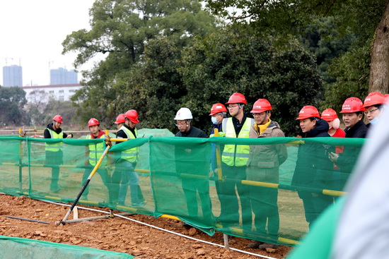 刘晓东校长一行在项目负责人的陪同下深入施工现场实地察看,了解当前项目进展及施工情况。