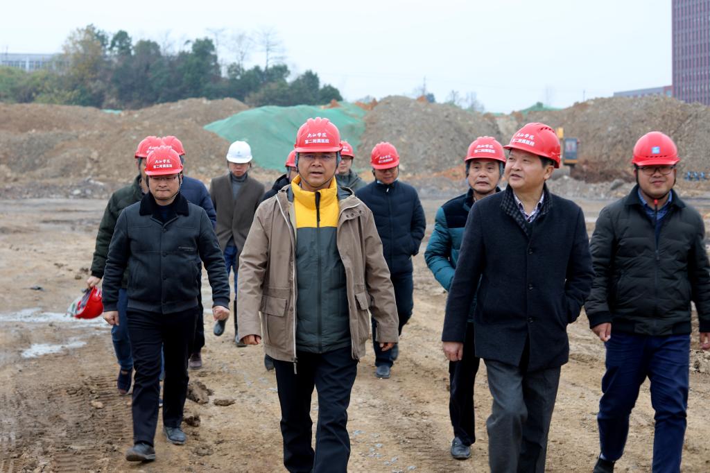 12月18日上午,校长刘晓东先后来到贝博官网第二附属医院建设项目及教育资源整合建设项目工地指导工作。副校长杨耀防、夏启国参加指导。
