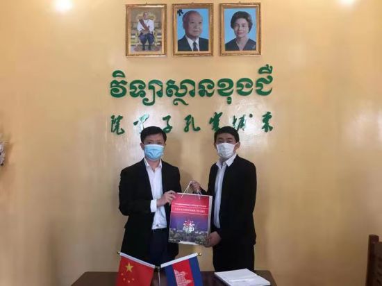 随后,王德鑫一行听取了孔院主要教学点近期工作汇报,并对孔院的工作给予了肯定。王德鑫为教师们发放了“春节包”及慰问物资。教师们纷纷表示,“春节包”装满了祖国亲人对他们的惦记和关怀。“我们将牢记祖国人民的嘱托,不忘初心,不辱使命,继续坚守岗位,为中柬人文交流做出应有的贡献。”