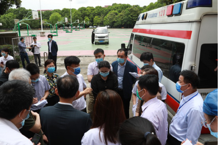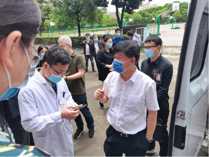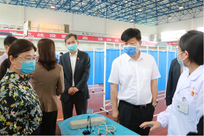 5月22日中午,国家卫健委职业卫生中心副主任徐克明率国务院联防联控机制江西工作组一行4人来贝博官网检查指导新冠病毒疫苗接种工作。省卫健委党组成员、副主任钭方芳,省卫健委血地处处长谢建文,省第二指导组组长、省交通运输厅二级巡视员彭瑜,副组长、省卫健委规划发展与信息化处二级调研员陈华新,九江市政府副市长李军,市政府副秘书长黄效兵,市卫健委主任周泽甫,市卫健委副主任孙勇军等陪同检查。贝博官网党委书记赵伟,副校长杨耀防热情接待了工作组一行。
