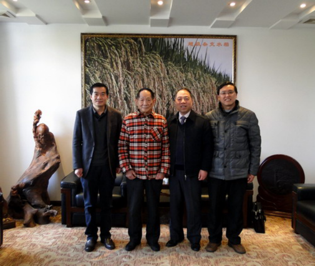 2014年2月21日,我与时任党(校)办主任刘遵海、宣传部干部吴彭年一道,专程赴长沙国家杂交水稻工程技术研究中心,拜访贝博官网名誉教授袁隆平院士。我代表BB贝博艾弗森官方网站4万余名师生员工,向袁隆平院士表示问候,并向袁院士汇报了贝博官网近年来教学、科研、服务地方经济社会发展及“山江湖”学科建设等取得的成绩。